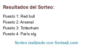 Lista de participantes: Tottenham, París stg, Red bull, Arsenal.