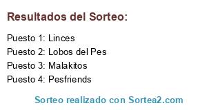 Lista de participantes: Lobos del Pes, Malakitos, Linces, Pesfriends.