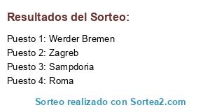 Lista de participantes: Sampdoria, Zagreb, Werder Bremen, Roma.