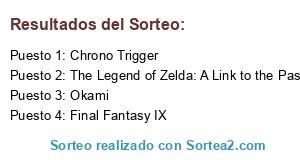 Lista de participantes: The Legend of Zelda: A Link to the Past, Final Fantasy IX, Okami, Chrono Trigger.