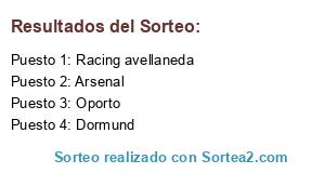 Lista de participantes: Oporto, Arsenal, Racing avellaneda, Dormund.