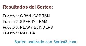 Lista de participantes: RATECA, GRAN_CAPITAN, PEAKY BLINDERS, SPEEDY TEAM.