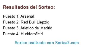 Lista de participantes: Red Bull Liepzig, Atletico de Madrid, Arsenal, Huddersfield.