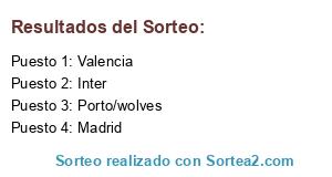 Lista de participantes: Inter, Valencia, Madrid, Porto/wolves.