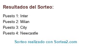 Lista de participantes: Milan, Inter, City, Newcastle.