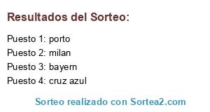 Lista de participantes: bayern, cruz azul, milan, porto.