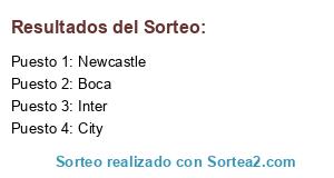 Lista de participantes: Boca, Inter, City, Newcastle.
