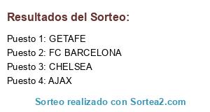 Lista de participantes: AJAX, FC BARCELONA, CHELSEA, GETAFE.