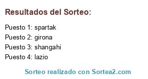 Lista de participantes: spartak, girona, lazio, shangahi.