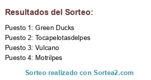Lista de participantes: Tocapelotasdelpes, Vulcano, Green Ducks, Motrilpes.