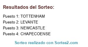 Lista de participantes: CHAPECOENSE, NEWCASTLE, TOTTENHAM, LEVANTE.