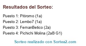 Lista de participantes: BeticoNazari (2aB G1), AlberV17 (2aB G3), Fernanbetico (1a), Pichichi_Molina (2a).