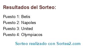 Lista de participantes: Napoles, Betis, United, Olympiacos.
