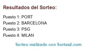 Lista de participantes: MILAN, BARCELONA, PSG, PORT.