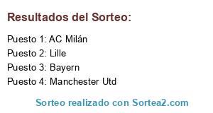 Lista de participantes: AC Milán, Lille, Bayern, Manchester Utd.