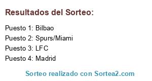 Lista de participantes: LFC, Madrid, Bilbao, Spurs/Miami.