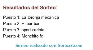 Lista de participantes: + tour bar, sport carlota, Monchito fc, La toronja mecanica.