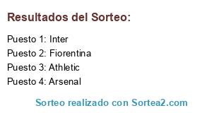 Lista de participantes: Fiorentina, Arsenal, Athletic, Inter.
