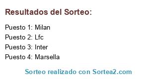 Lista de participantes: Milan, Inter, Lfc, Marsella.