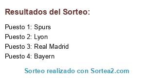 Lista de participantes: Bayern, Spurs, Lyon, Real Madrid.