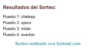 Lista de participantes: chelsea, everton, milan, spurs.