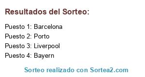 Lista de participantes: Porto, Barcelona, Bayern, Liverpool.