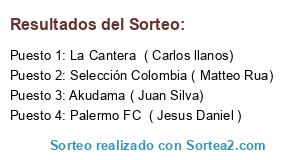 Lista de participantes: La Cantera ( Carlos llanos), Selección Colombia ( Matteo Rua), Palermo FC ( Jesus Daniel ), Akudama ( Juan Silva).
