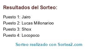 Lista de participantes: Jairo, Locopoco, Shox, Lucas Millonarioo.