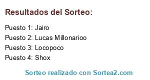 Lista de participantes: Jairo, Locopoco, Shox, Lucas Millonarioo.