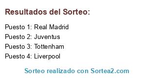 Lista de participantes: Liverpool, Tottenham, Juventus, Real Madrid.