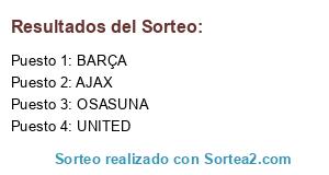 Lista de participantes: BARÇA, AJAX, UNITED, OSASUNA.