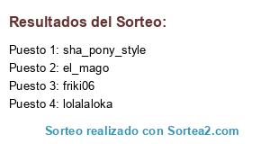 Lista de participantes: friki06, el_mago, lolalaloka, sha_pony_style.