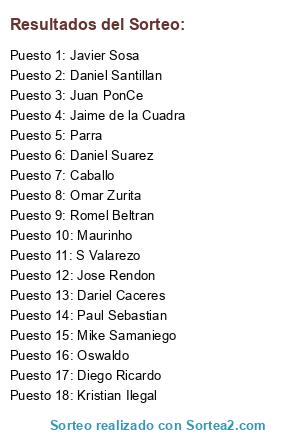 Lista de participantes: Daniel Santillan, Daniel Suarez, Dariel Caceres, Diego Ricardo, Javier Sosa, Jaime de la Cuadra, Jose Rendon, Juan PonCe, Mike Samaniego, Maurinho, Caballo, Omar Zurita, Parra, Paul Sebastian, Kristian Ilegal, Oswaldo, Romel Beltran, S Valarezo.