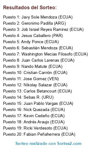 - Puesto 20: Fabian Peñaherrera (ECUA)