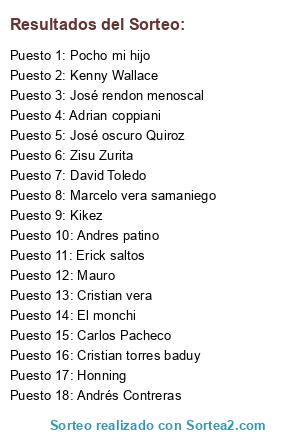 - Puesto 16: Cristian torres baduy