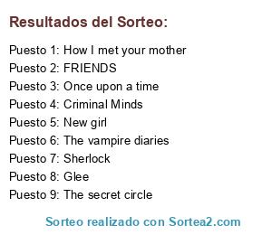 Lista de participantes: How I met your mother, Sherlock, The vampire diaries, Criminal Minds, FRIENDS, Glee, New girl, The secret circle, Once upon a time.