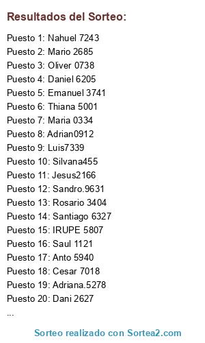 Resultados del sorteo: