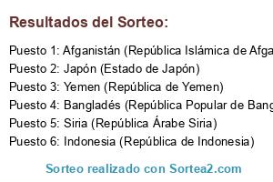 - Puesto 3: Sri Lanka (República Democrática Socialista de Sri Lanka)
