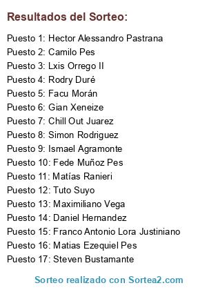 Lista de participantes: Gian Xeneize, Maximiliano Vega, Fede Muñoz Pes, Matías Ranieri, Steven Bustamante, Camilo Pes, Rodry Duré, Simon Rodriguez, Facu Morán, Daniel Hernandez, Lxis Orrego II, Tuto Suyo, Hector Alessandro Pastrana, Chill Out Juarez, Matias Ezequiel Pes, Ismael Agramonte, Franco Antonio Lora Justiniano.