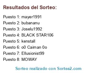 Lista de participantes: Ellusionist99, kenstall, mayer1991, Joselu1992, bubananu, BLACK STAR106, MOWAY, o0 Caiman 0o.