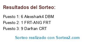 Lista de participantes: 1 FRT-ANG FRT, 2 charli012 FRT, 3 AVR_AlexRueda AVR, 4 AVR_Willy96 AVR, 5 Jaime-mv DBM, 6 Alexshark4 DBM, 7 prowanted7 JIM, 8 jim-Nardyxteam JIM, 9 Darfran CRT, 10 H_eracles CRT, 11 Un_Jitano PSRC, 12 E-P-P-O46 PSRC, 13 Goliatoh TOGAS, 14 Josele_one TOGAS.