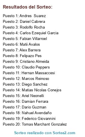 Resultados del sorteo: