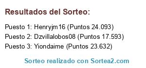 Lista de participantes: Henryjm16 (Puntos 24.093), Yiondaime (Puntos 23.632), Dzvillalobos08 (Puntos 17.593).