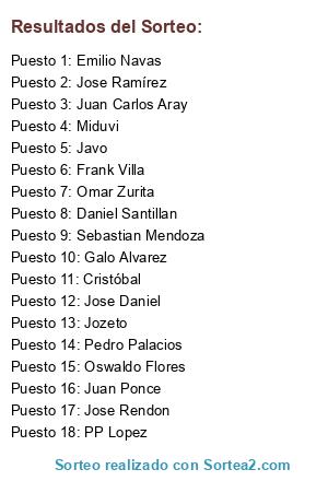 Lista de participantes: Juan Ponce, Omar Zurita, Jose Rendon, Daniel Santillan, Galo Alvarez, PP Lopez, Emilio Navas, Javo, Juan Carlos Aray, Miduvi, Jose Daniel, Cristóbal, Jozeto, Oswaldo Flores, Frank Villa, Jose Ramírez, Sebastian Mendoza, Pedro Palacios.