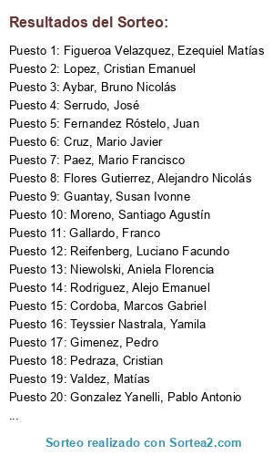 Resultados del sorteo:
