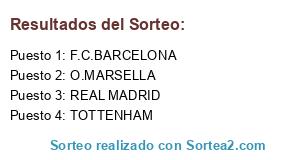 Lista de participantes: F.C.BARCELONA, O.MARSELLA, TOTTENHAM, REAL MADRID.
