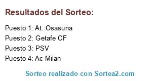 Lista de participantes: Getafe CF, Ac Milan, At. Osasuna, PSV.