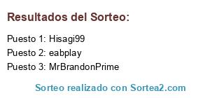 Lista de participantes: Eru, Joel777, Vindas19, xCeeSs, darthrauko, Juraor, atk2912, TheMasterCraft, HanielGonz, blacklop, Dulnorzas, meny98, killersamus, ferreResident, saitchev, SuperNovaGaymer, nEwwbit0, NeoCloud6, Lichaos, Damalis, RoDaJaS, rahisan95, abraham madrid, luthor8, nachetex, easymadafacka, Drakko, XLC5, Kurotroll, miki3215, artemo34, jasminix21, dawrinmajor, ISMAELGAYMEResp, Hisagi99, david1251, yirak, FraVieMor, JakiroXCI, suitan, InfraCry119, Zeref, magoincreib, sinji, noeninde, Rocamora, xmarcos1, anyemi, rodrigo98, Jok7s, amadorcon, Eroset, Christ, AnnaKC, DreMtioN, sebasgaymer, Bane, Siriuskc, Consciente, javoniyatopo, gomez5rap, airymadness, Acorazado, NoxSaiyan, Delios77, eabplay, Flozzenner, Mgalan11, Parnaso, Henai, Faxundo, CAspas829, gorimey, Thedevilcry, AlejandroBc, VegettiinGamer, xbySpeeDx, davidguay1234, sebascapuchino, elcalabaxzo, ZekiBenitez, KevinDL46, Caxonduno, ciberice, Vevol, draku, IvanTuama, Nobody, Batusai, MrBrandonPrime, RaptooR, IJCS123, Qadum, viscolo, alexmiliki, PiDiane, reyman88, Pirus, ccarfer, Carapan3000, usuario_foro , ElCasro, Redos, galiman, FranXrl, trabucon, LeoWolf4, Davolum, Clerigo, DudeHades, joker17, Daxky, papafrita69, Katros, RoberTroll99, TheSlytter, hisyaz, 0wnedhq, Xrg963, jogatre, sayco, jorgeYegres, Parthur, aramichock, nahuel964, Masthel, Muzo94, rulct, AlexSoulGaming, Waterman, Funkyndez, Darkweaver, firenvaldrin, darksasu3, edugalian, uskfantasma, Anhiz.