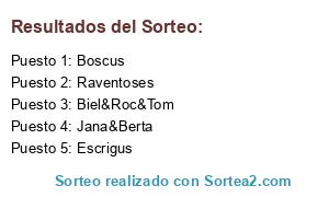 Lista de participantes: Escrigus, Boscus, Raventoses, Jana&Berta, Biel&Roc&Tom.