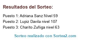 Lista de participantes: Ana Cristina Carreño Nivel 67, Nora Castagna nivel 79, Lupiz Davila nivel 107, Charo Rodriguez nivel 141, Adriana Sanz Nivel 59, Bibiana Schreiber nivel 57, Inma RY nivel 70, Rucas Castro nivel 147, Charito Zuñiga nivel 63, Paloma Gomez Querida nivel 113.